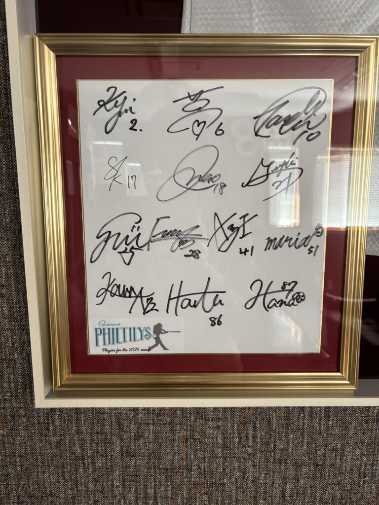 いただいた優勝記念ボールと一緒に飾らせていただいております。